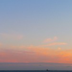 太陽と逆側、海の方がなんだかピンク色になってキレイな感じどした~。