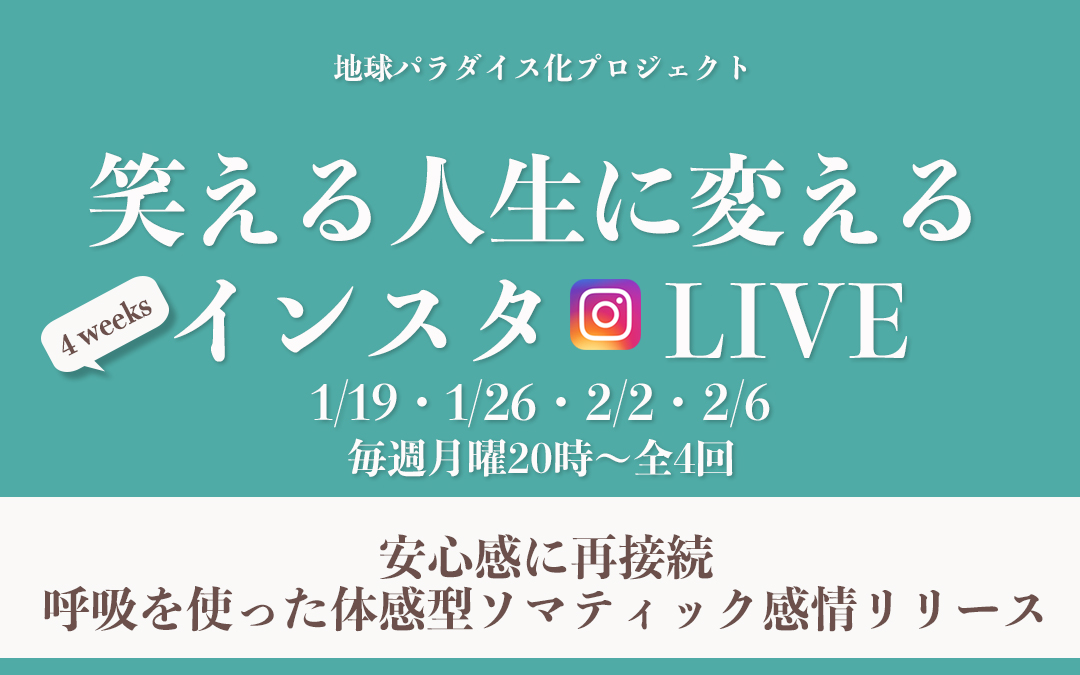 1/19からこちら。感情の正しい感じ方と、なぜ効果があるのかをライブ配信。インスタライブで気軽にご参加いただけます。課題も出します。4週間ちゃんとやったらめっちゃ変わるから。