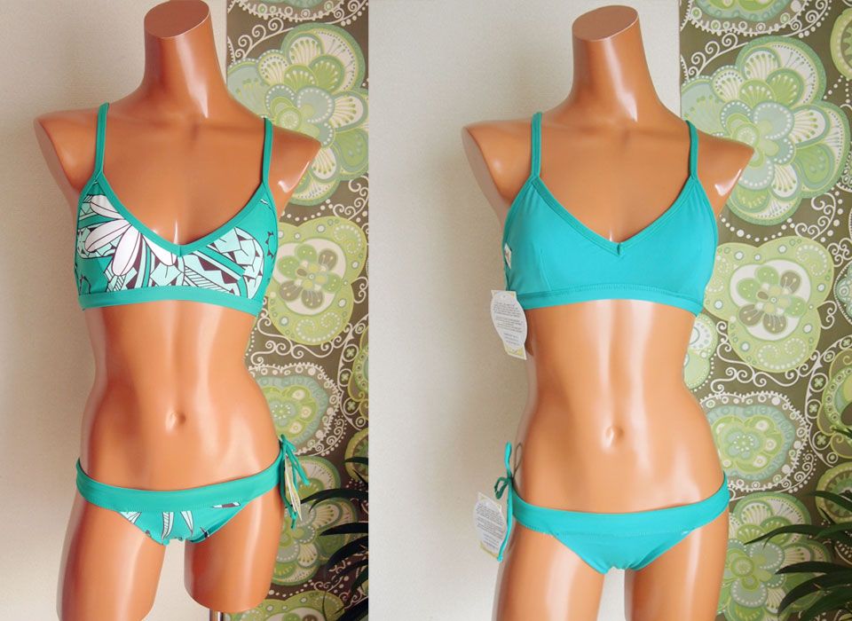 型は、まずはこちら、定番で根強い人気のJaimie Sport Topと、カバー力はあるのにやぼったくならないボーイレッグが人気のKristen Boyleg。Kristenは写真のように、ウェストを折り返して着てもかわいいです。こちらの色はMELIAプリントのターコイズ。鮮やかなターコイズブルーで、これ着てると、かわいいかわいいって言ってもらえますヨ。笑。